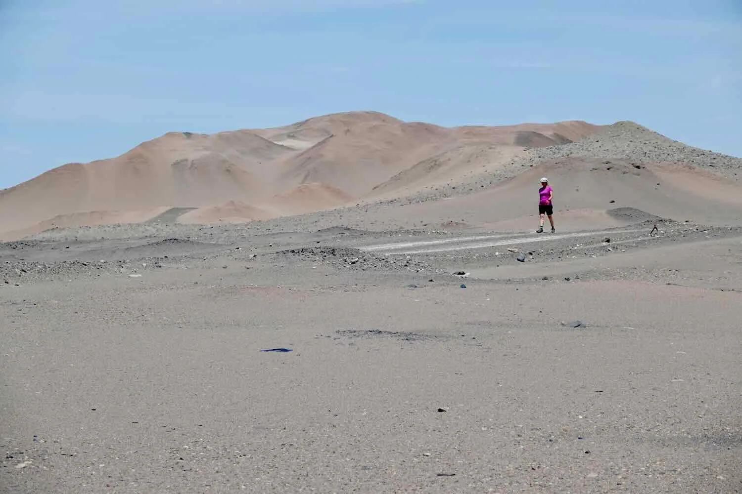 The great expanses of sand gave the feeling of a truly remote desert. In many places, Peru’s coastal desert reminded us of the Sahara. Near Las Tres Quebradas, Pan-American Highway, Arequipa Department, Peru. Copyright © 2019-2026 Pedals and Puffins.