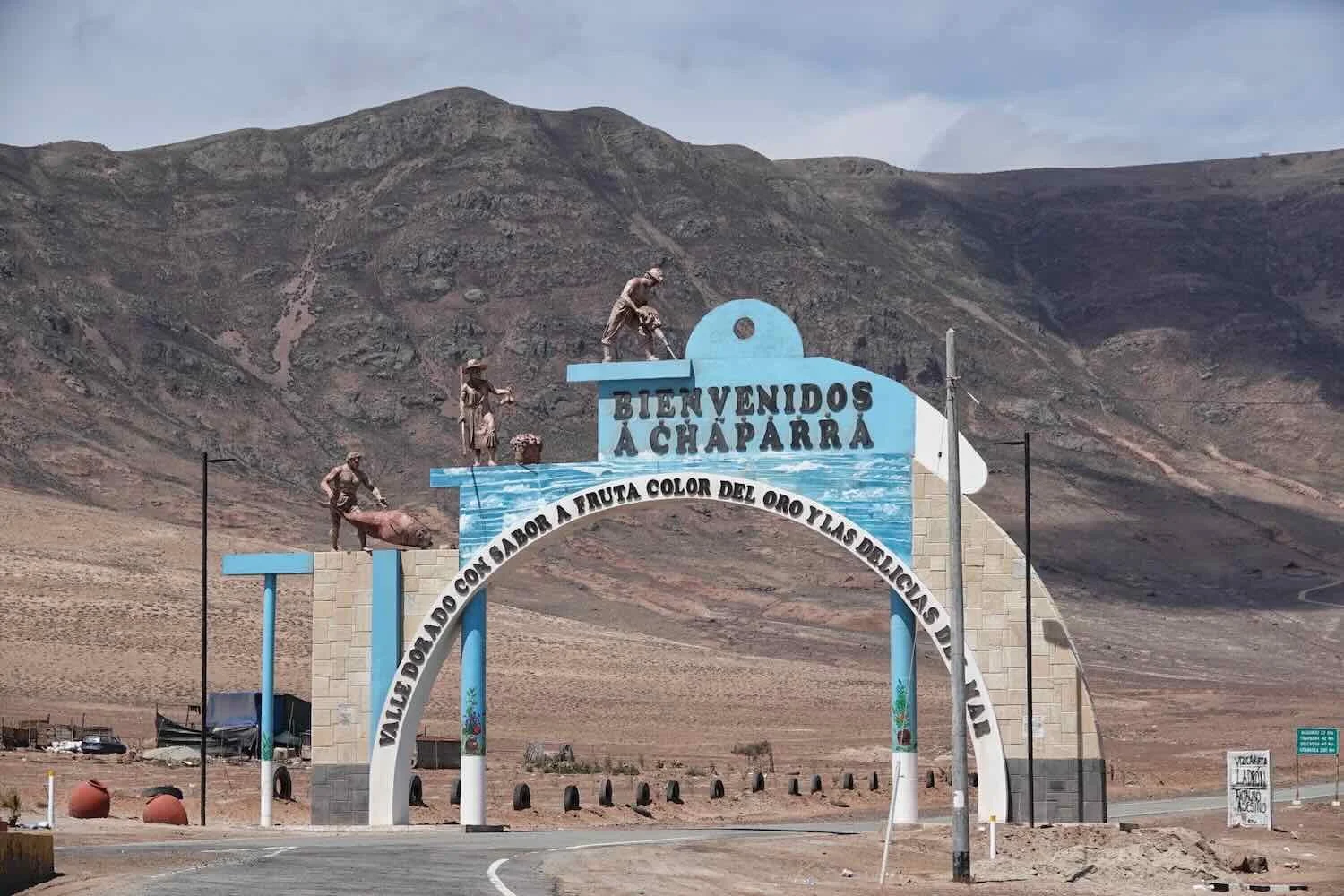 The welcome arch for the town of Chaparra honored three of the area’s prominent trades - fishing, agriculture, and mining. Chaparra, Pan-American Highway, Arequipa Department, Peru. Copyright © 2019-2026 Pedals and Puffins.