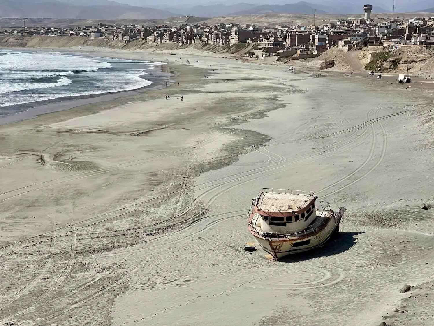 Chala (pop. 8,075) was another town that relied primarily on fishing - in this case anchovetas (small fish similar to anchovies). Processing anchovetas into fish meal or oil is a huge industry in Peru. A lone, abandoned fishing boat sat stranded on the town’s beach. Chala, Pan-American Highway, Arequipa Department, Peru. Copyright © 2019-2026 Pedals and Puffins.