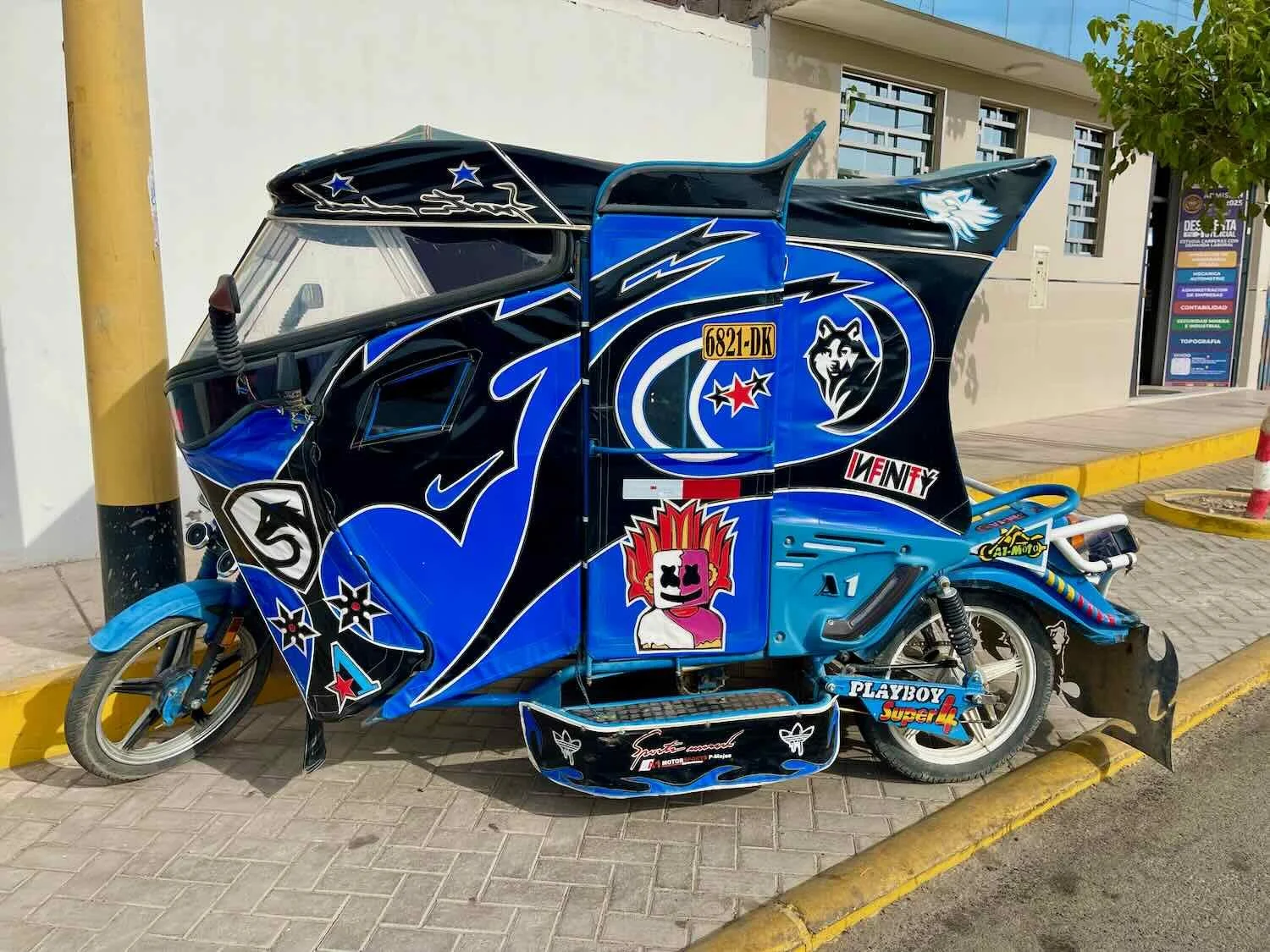 Adding to the sense of affluence, El Pedregal had some of the most extravagant, souped-up tuktuks we had seen in a long time. There seemed to be a competition among the tuktuk drivers to see who could create the most wildly-decorative tuktuk in town. Most had shiny, well-waxed, custom paint jobs, colorful wheels, decorative skirts, and plush interiors (click on the photos below to enlarge the images). They totally put to shame the beat-up, old tuktuks we’d seen throughout most of Latin America.
