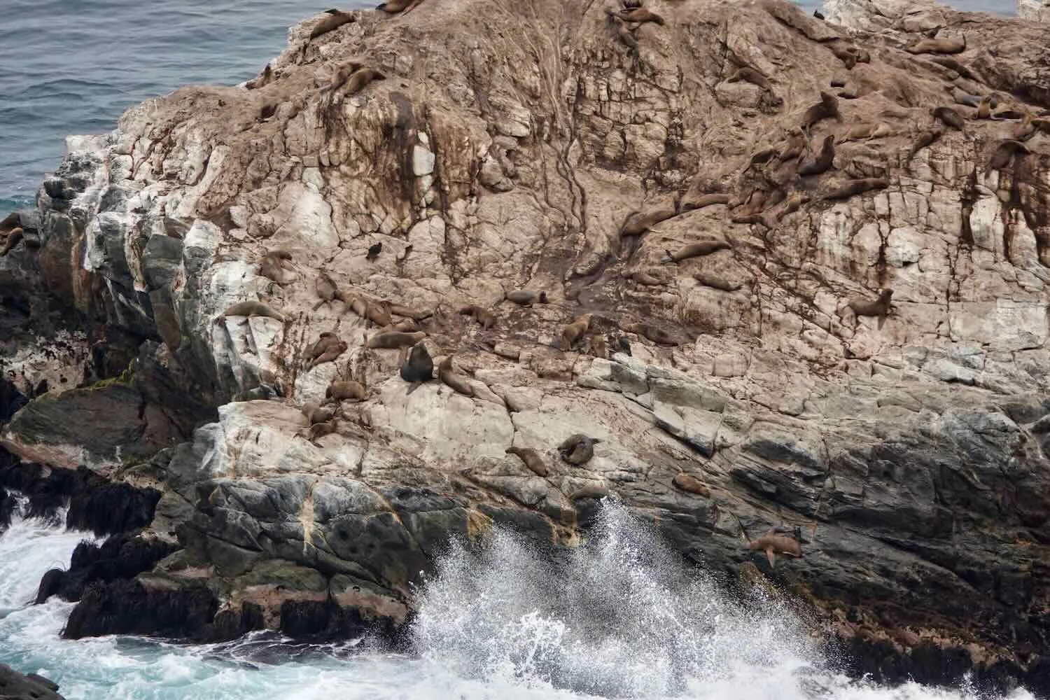 These were the first South American Sea Lions that we had seen since reaching the Peruvian coast. Look closely, there were many Sea Lions (the darker, brown spots) lounging on those rocks. Some were almost on the top. We’re always surprised at how well Sea Lions can climb up nearly vertical rock faces. La Bodega Cove, Pan-American Highway, Arequipa Department, Peru. Copyright © 2019-2026 Pedals and Puffins.