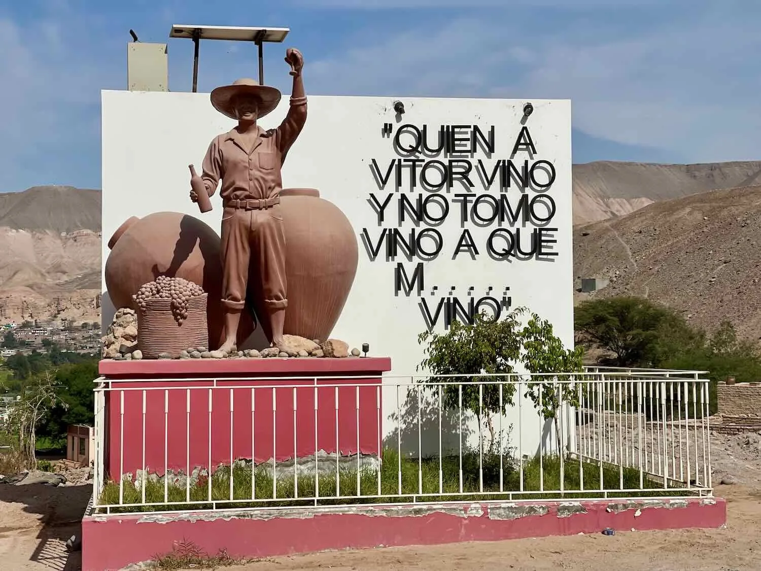 The Vitor Valley has produced some of Peru’s most renowned wines since the 1500s. Popular varieties include blends using Malbec, Muscatel and Torontel grapes. Accordingly, the town’s motto is a play on an old, Spanish saying that means, “Whoever came to Vitor and didn’t drink wine… What did he come for?” Vitor, Pan-American Highway, Arequipa Department, Peru. Copyright © 2019-2026 Pedals and Puffins.