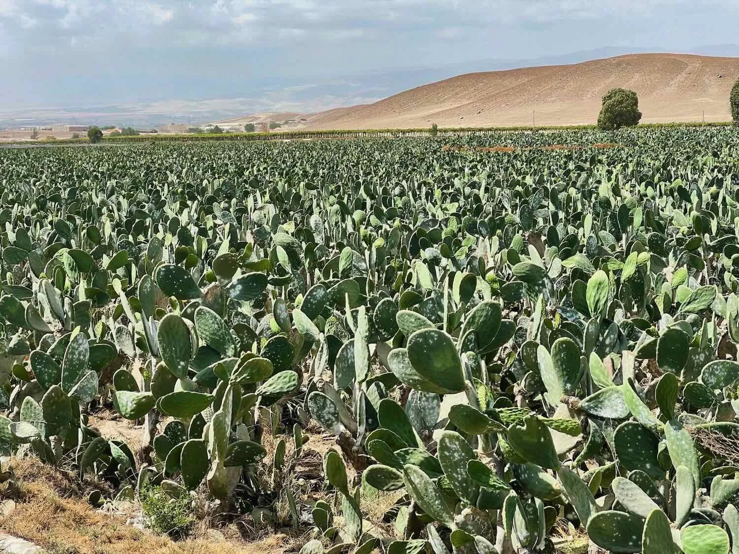 The land around the towns was covered with big fields of cultivated, prickly pear cactus. The fruit and big, green pads of prickly pear cacti have been part of the Peruvian diet for centuries. La Joya, Pan-American Highway, Arequipa Department, Peru. Copyright © 2019-2026 Pedals and Puffins.