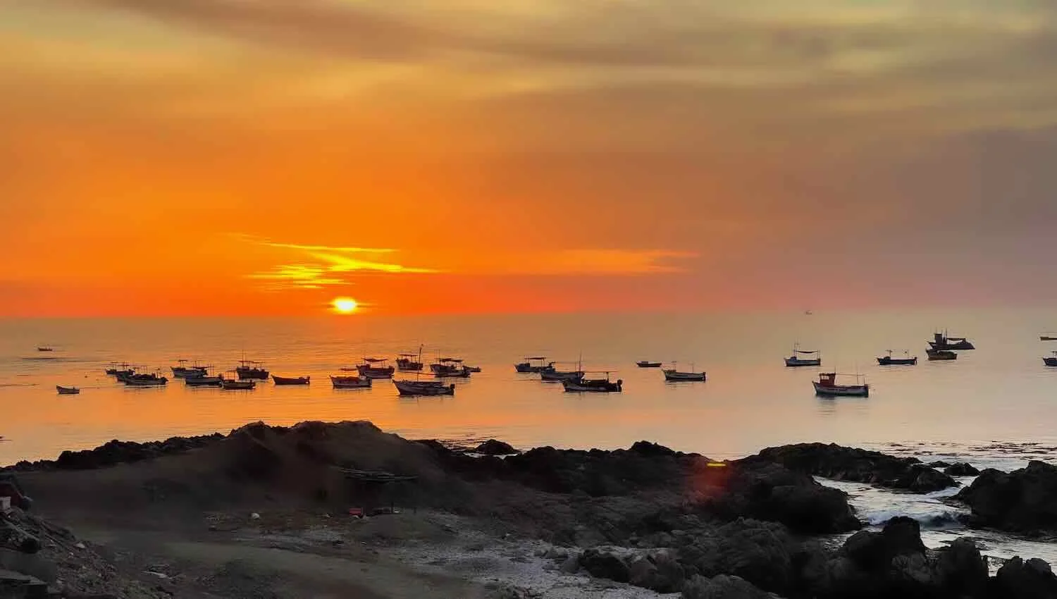 A richly-colored sunset over the Pacific Ocean. Puerto de Lomas, Arequipa Department, Peru. Copyright © 2019-2026 Pedals and Puffins.