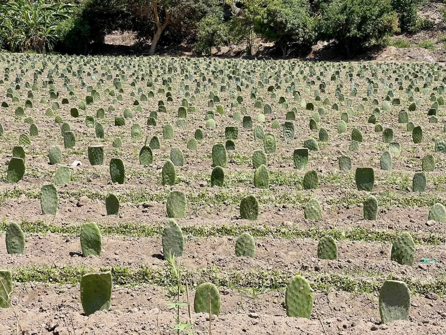 The presence of water supported a bit of agriculture, in this case, a newly-planted field of prickly pear cacti. Near Ingenio, N of Nazca, Pan-American Highway, Ica Department, Peru. Copyright © 2019-2026 Pedals and Puffins.