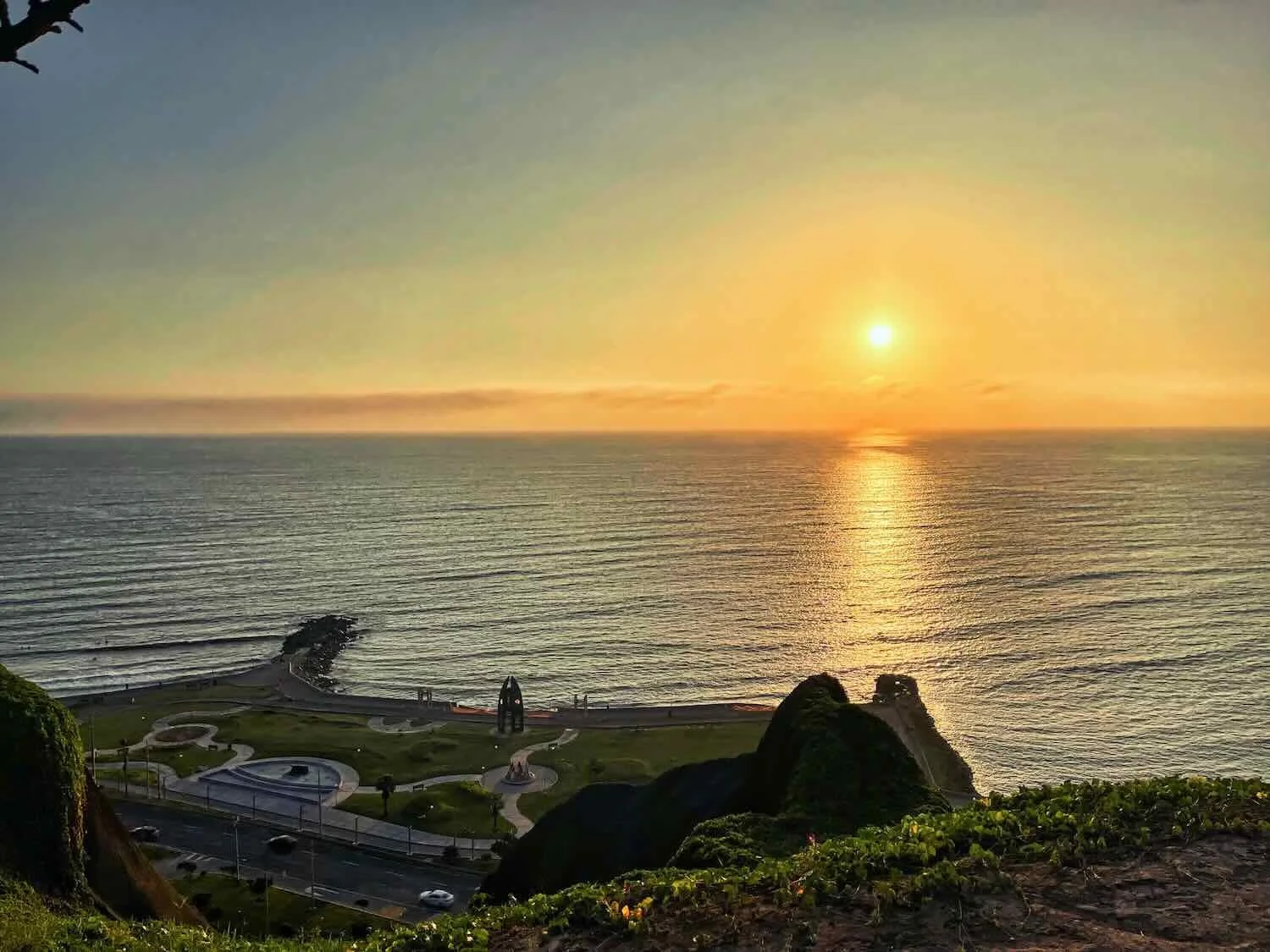 Sunset over the Pacific Ocean. Miraflores Cliff Boardwalk, City of Lima, Peru. Copyright © 2019-2026 Pedals and Puffins.