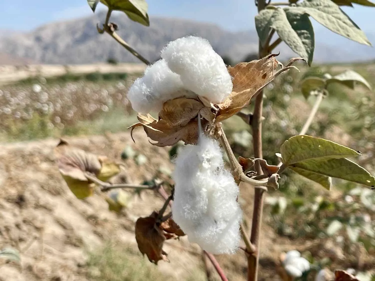 We cycled past more arid-land crops, like this cotton (which is native to Peru). San Francisco, Pan-American Highway, Ica Department, Peru. Copyright © 2019-2026 Pedals and Puffins.