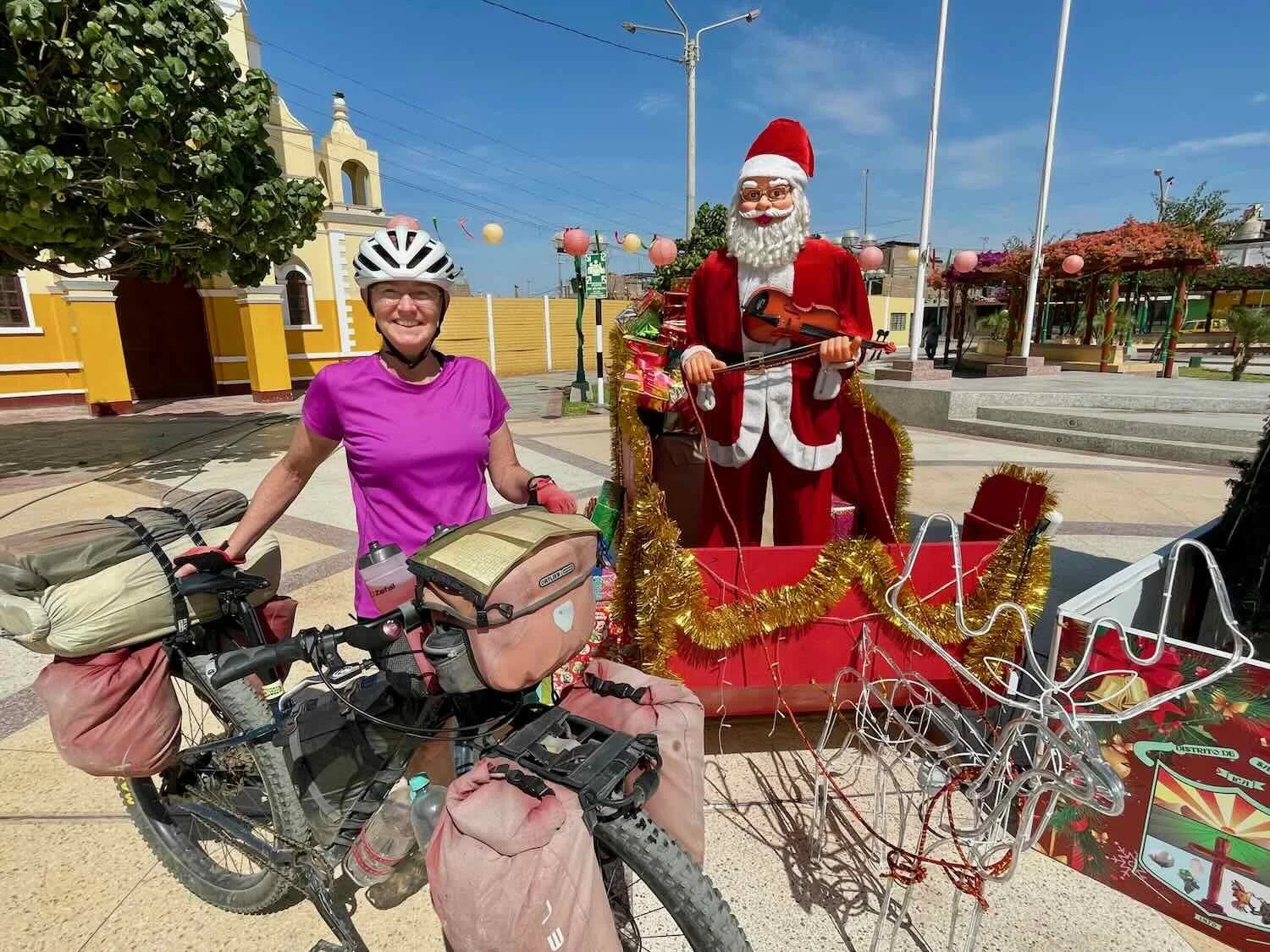 We hadn’t previously realized that Santa played the violin. Plaza Mayor, Santiago, Pan-American Highway, Ica Department, Peru. Copyright © 2019-2026 Pedals and Puffins.