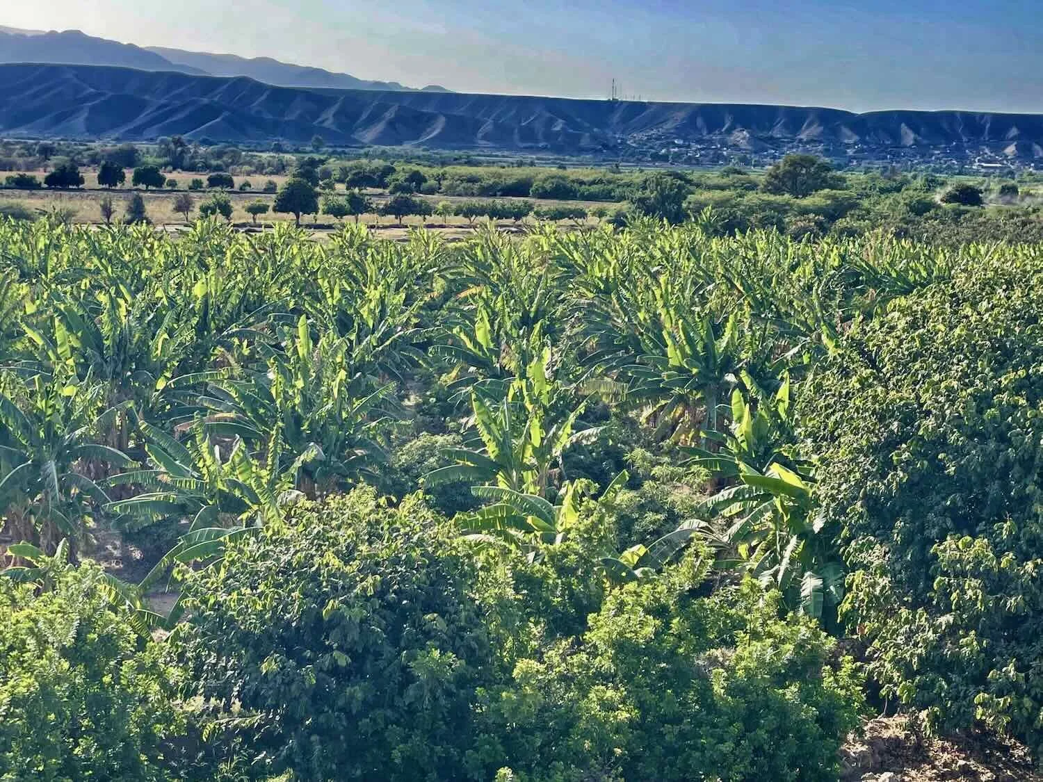 The road drew close to a banana plantation. Ever since arriving in Peru we had noticed how much better the bananas were than in Bolivia, and we guessed they must grow a lot of bananas somewhere in the country. But this was the first time we had seen any banana trees. It was another indicator that we were getting into the warmer tropics. N of Río Grande, Pan-American Highway, Ica Department, Peru. Copyright © 2019-2026 Pedals and Puffins.