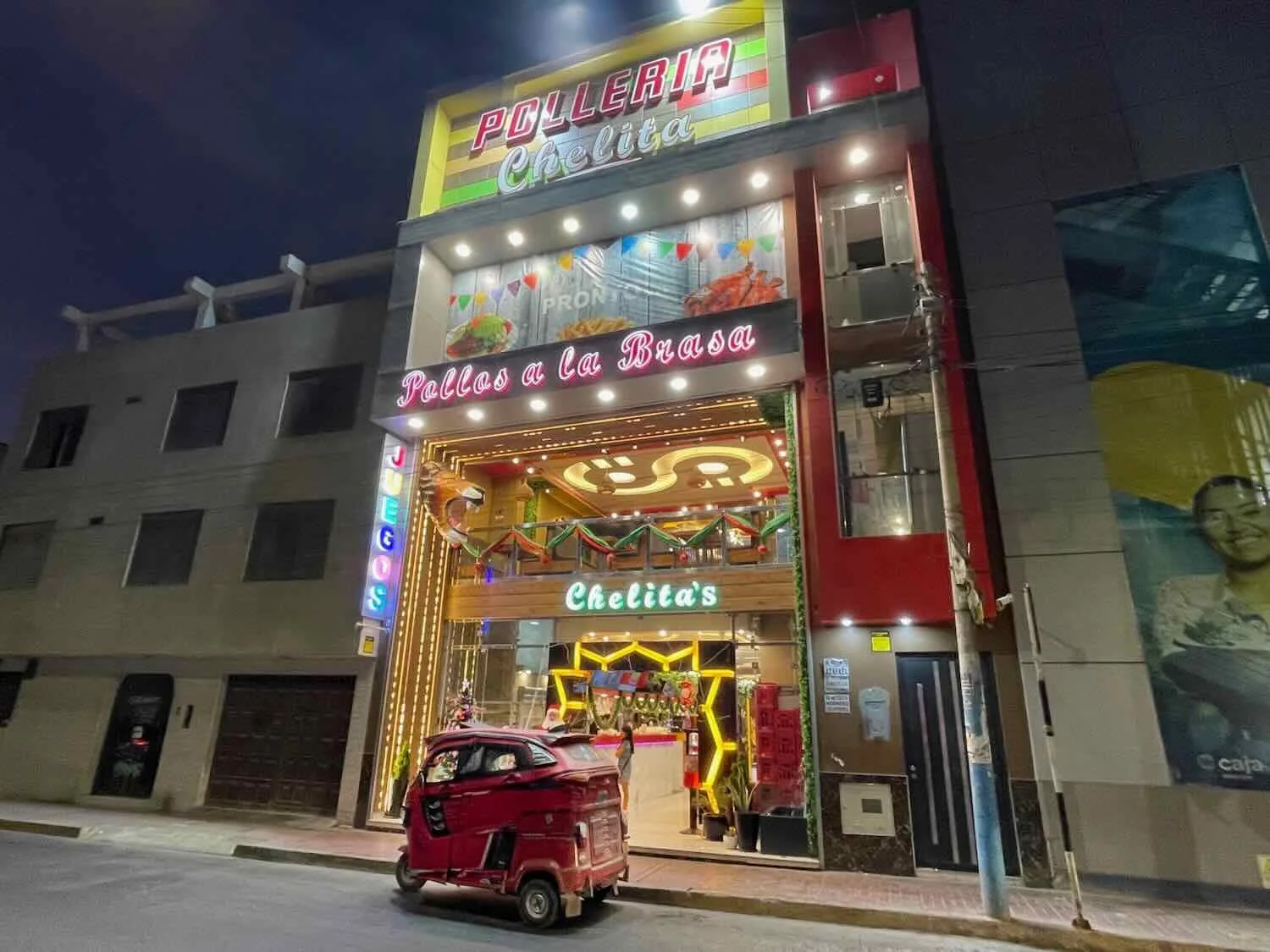 With all the chicken farms in the area, we were not surprised that Pisco hosted a whole lot of chicken restaurants. However, we were not prepared for the way they had responded to the heightened competition. All the chicken restaurants seemed to be in a cutthroat race to see which one could have the most dazzlingly colorful light display. This restaurant was in the running to take the prize. Pisco Ica Department, Peru. Copyright © 2019-2026 Pedals and Puffins.