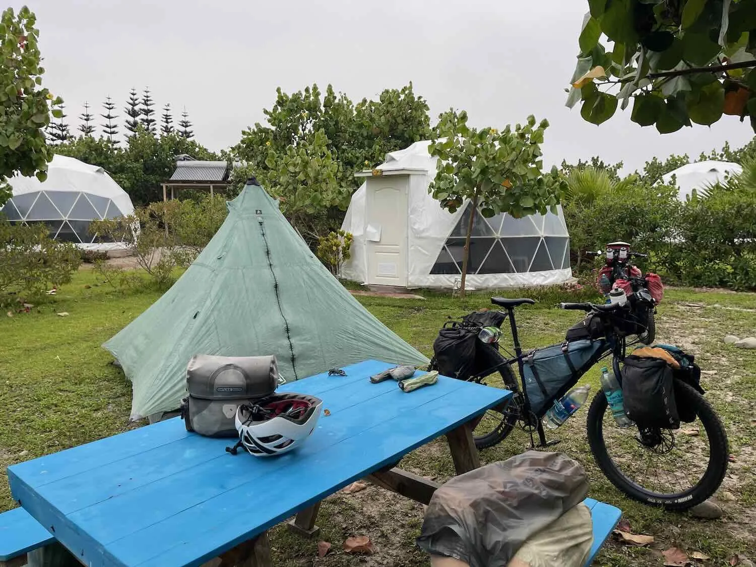 We set up our tent on the lawn next to one of the campground’s geodesic dome cabins. The site was perfect, even including a picnic table. Biosol Ecocamp, Herbay Bajo, Pan-American Highway, Lima Department, Peru. Copyright © 2019-2026 Pedals and Puffins.