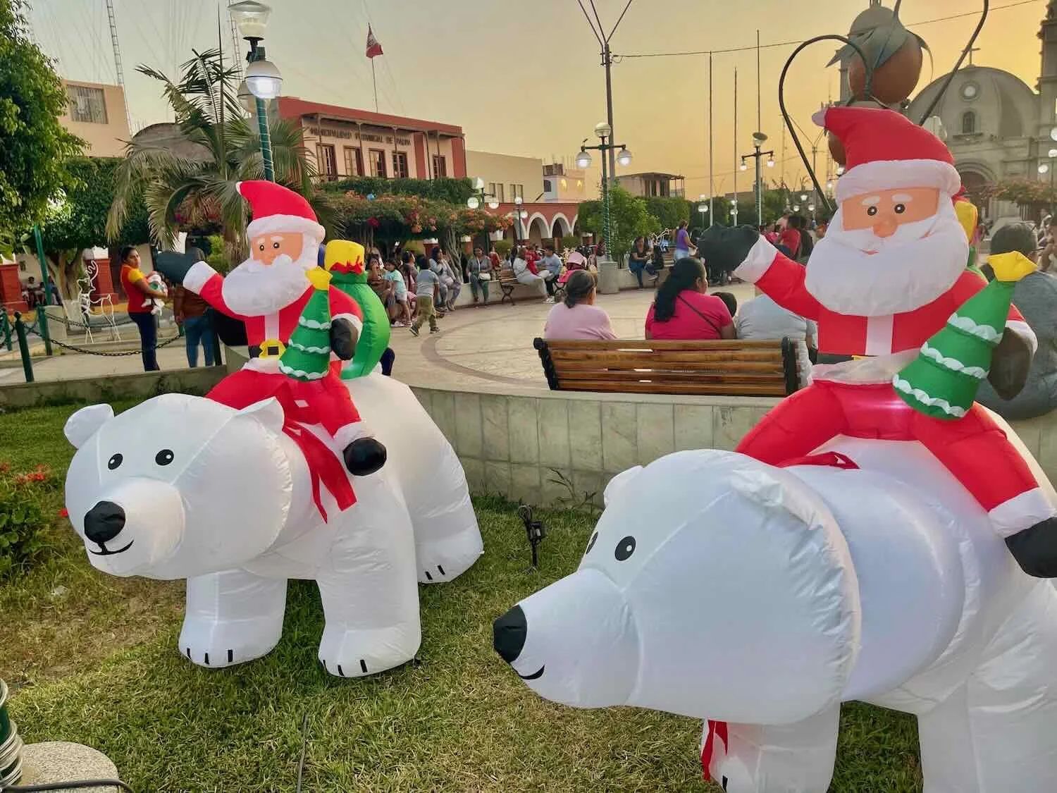 These Santas and their polar bears looked a bit out of place among the palm trees. Central Plaza, Palpa, Ica Department, Peru. Copyright © 2019-2026 Pedals and Puffins.