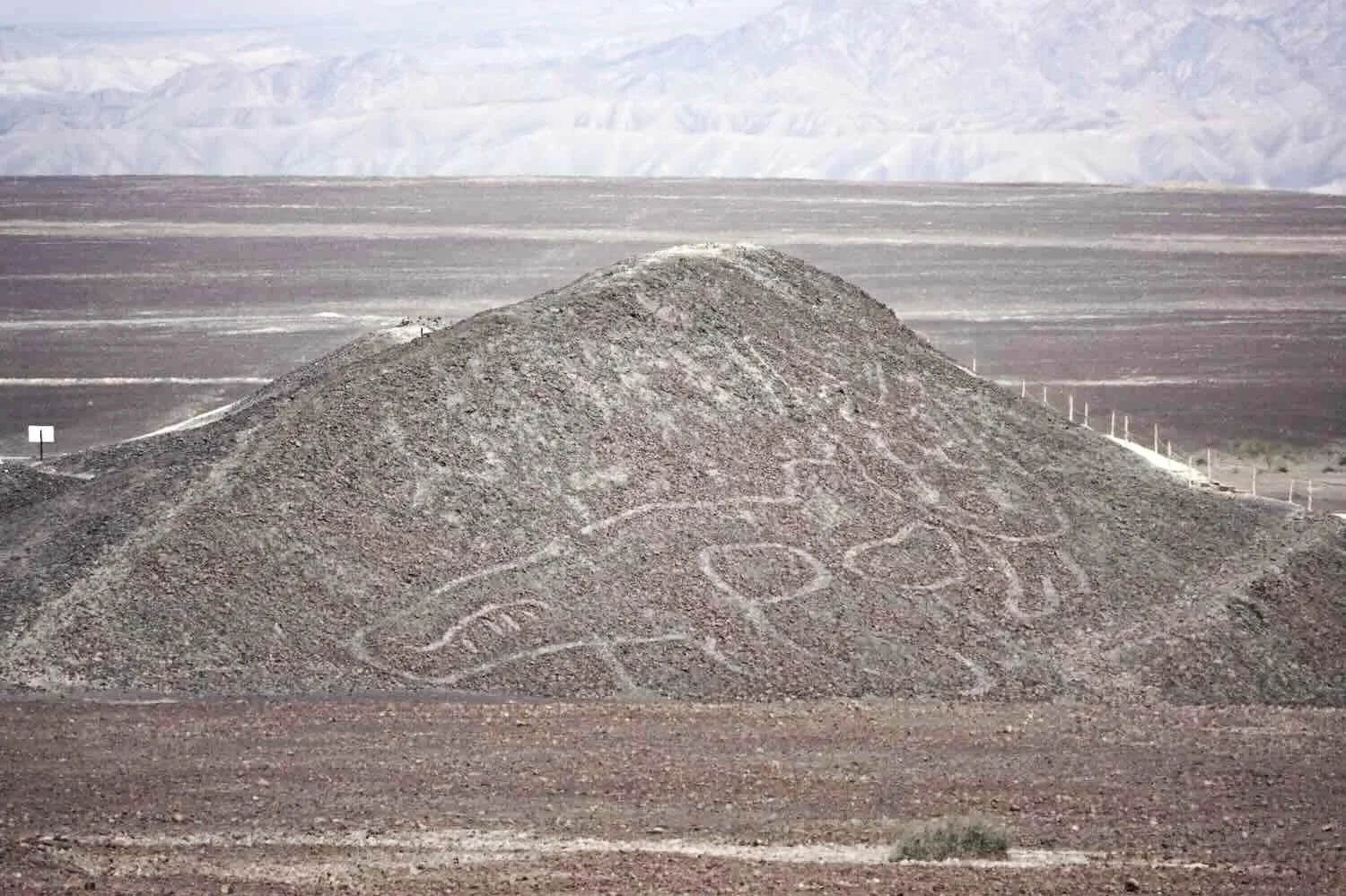 The Nazca people were the dominant civilization on Peru’s southern coast from about 100-800 AD. They were skilled craftsmen and engineers, known for their advanced, underground irrigation system, monumental ceremonial sites, ornate pottery, and intricate textiles. However, the innovation that really set them apart from other cultures was the creation of the Nazca Lines - a collection of very large images etched into the desert (i.e., ‘geoglyphs’), presumably for ceremonial purposes. And we had just encountered our first Nazca Lines.