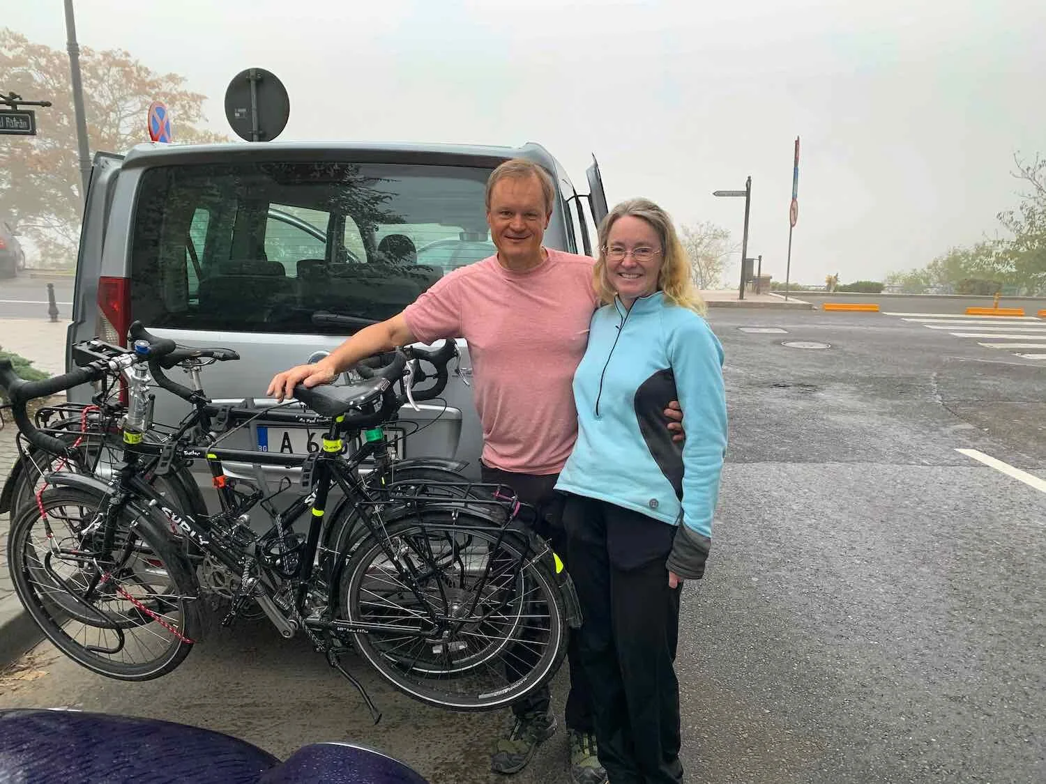 Our driver met us outside the hotel in Constanta, and loaded our bikes onto a rack on the back of the car. We then headed down the coast, on a misty morning.