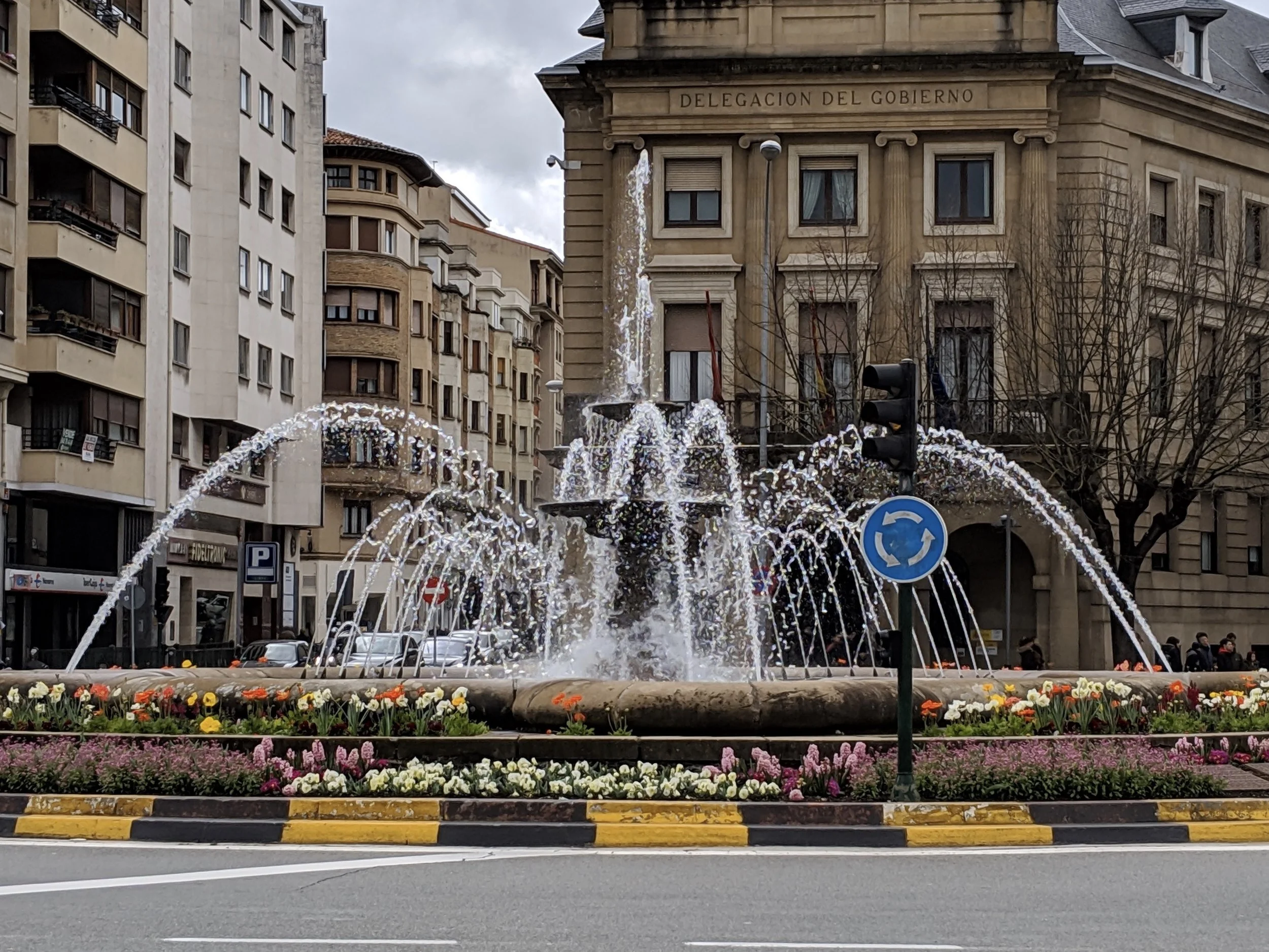Fountains brightened up several of the roundabouts in Pamplona, Spain. Copyright © 2018-2019 Pedals and Puffins.