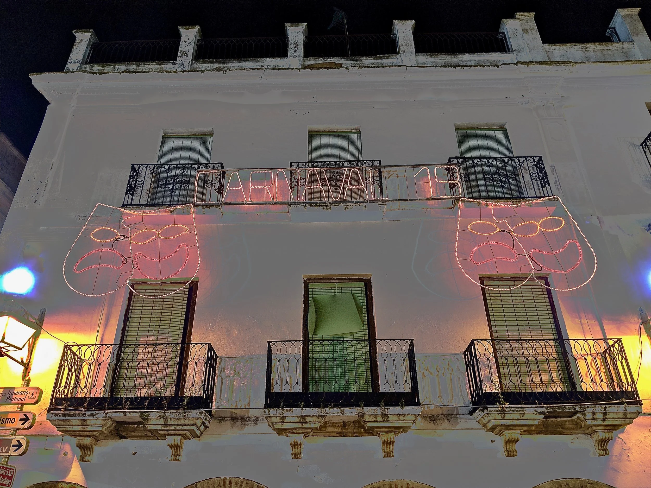 The streets and plazas of Zafra’s city center were decorated with lights depicting Carnaval themes. Copyright © 2018-2019 Pedals and Puffins.