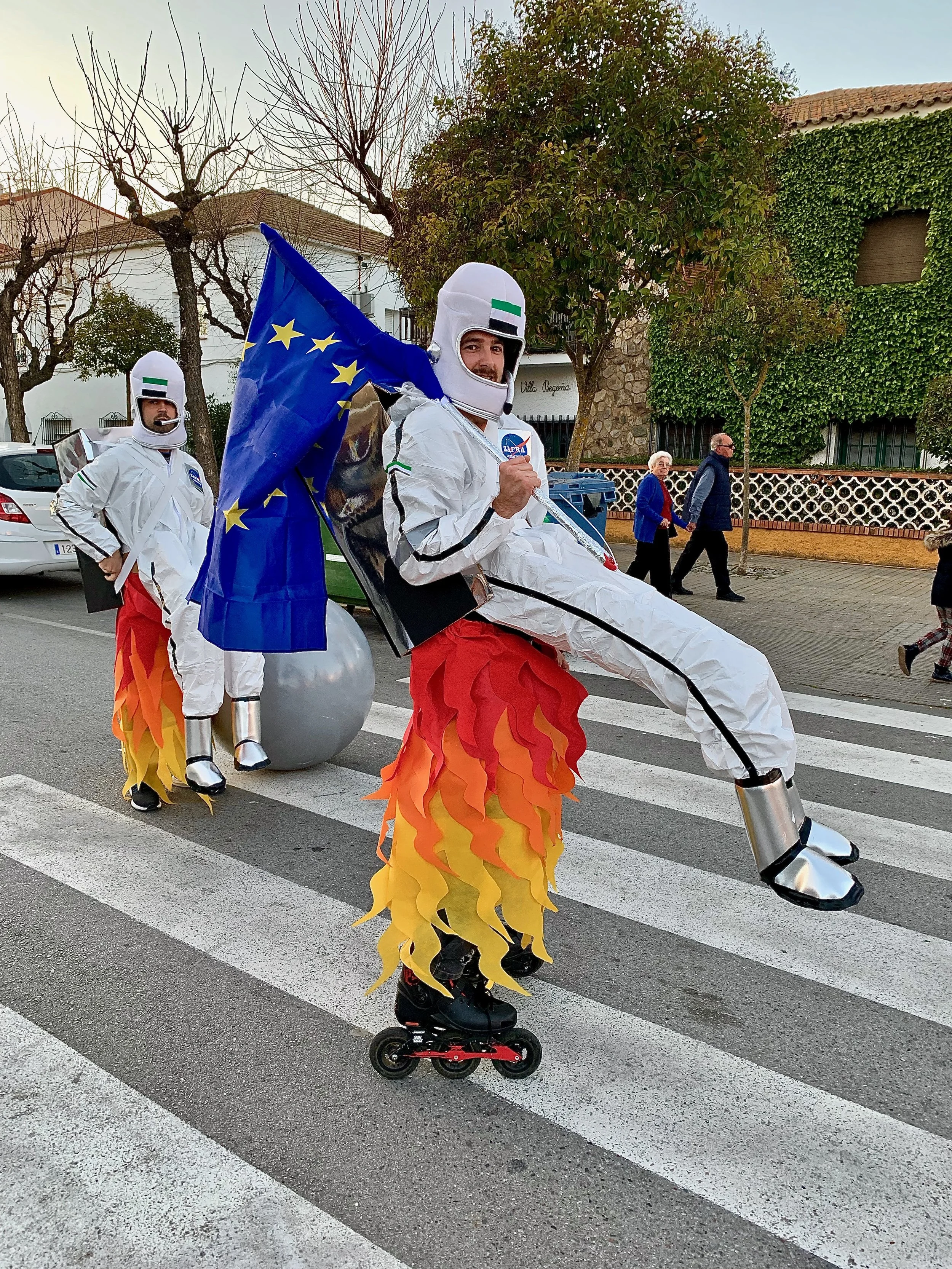 A Comparsa of EU astronauts roller-skated by. Copyright © 2018-2019 Pedals and Puffins.