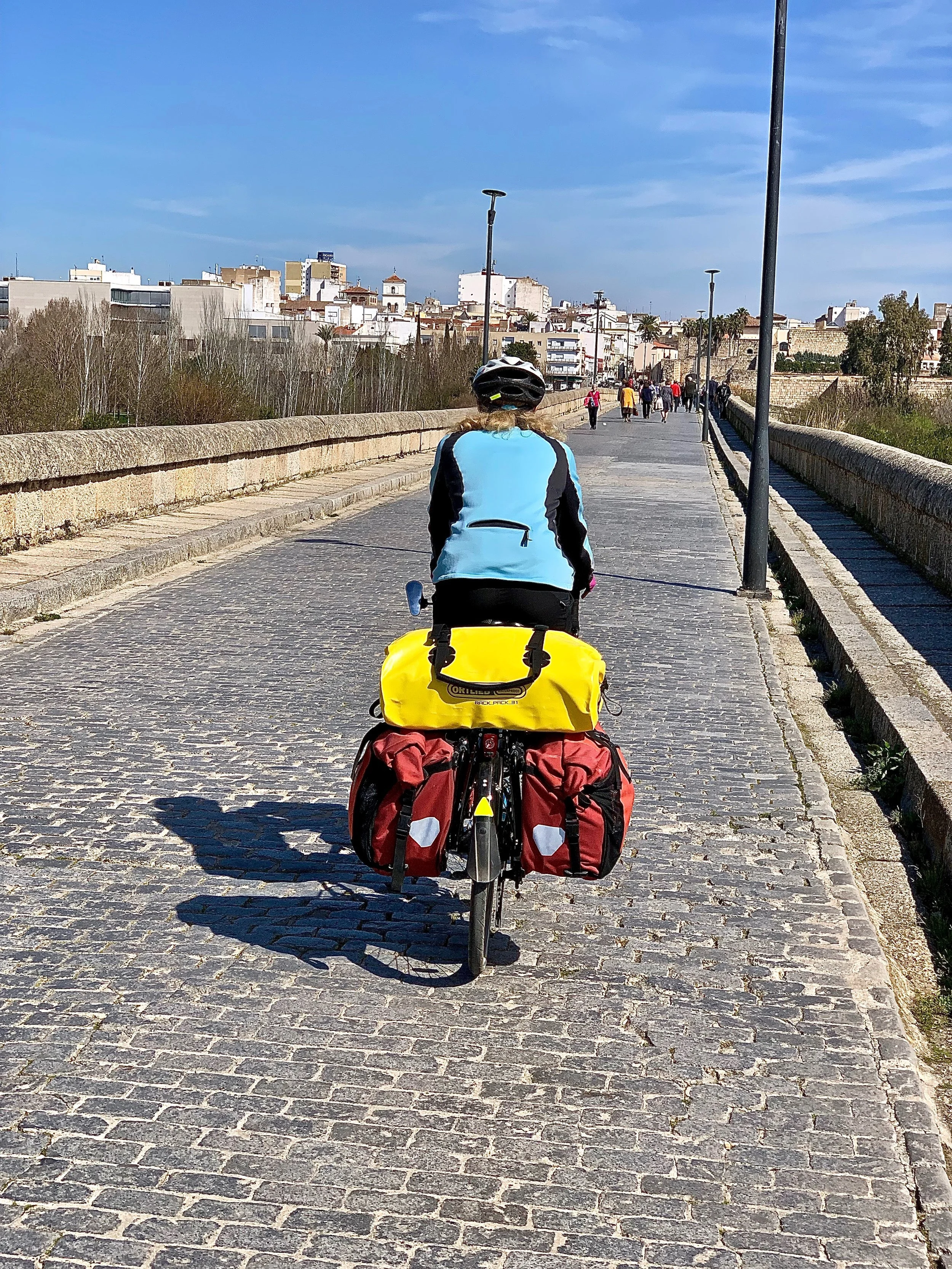 Riding into Mérida’s old town involves crossing the Roman Bridge, built around 100 A.D. The length of the bridge (721 m) gives you time to savor the approach. Copyright © 2018-2019 Pedals and Puffins.