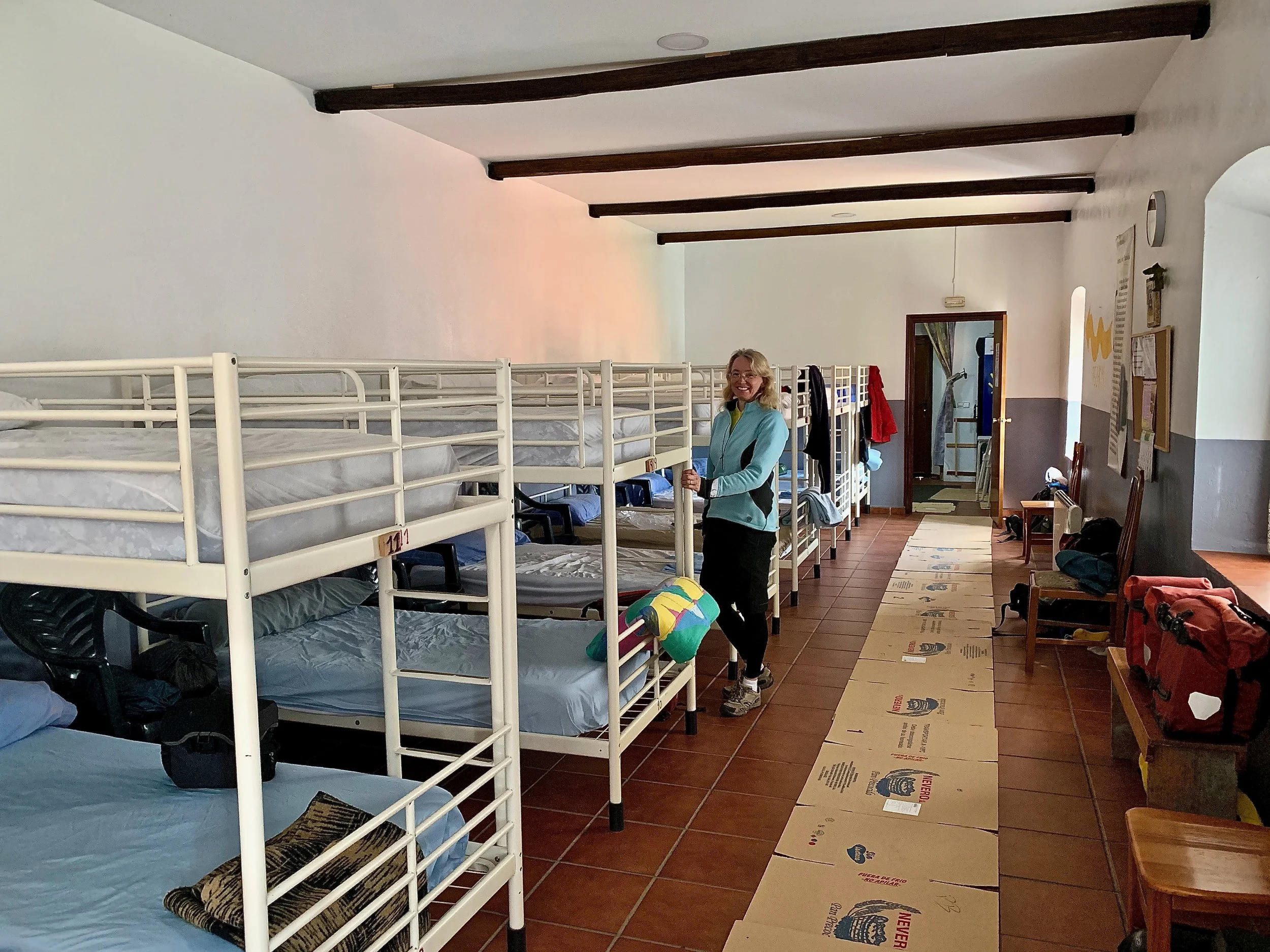 Settling in to our assigned spots at the pilgrim’s hostel in Mérida, Spain. Copyright © 2018-2019 Pedals and Puffins.