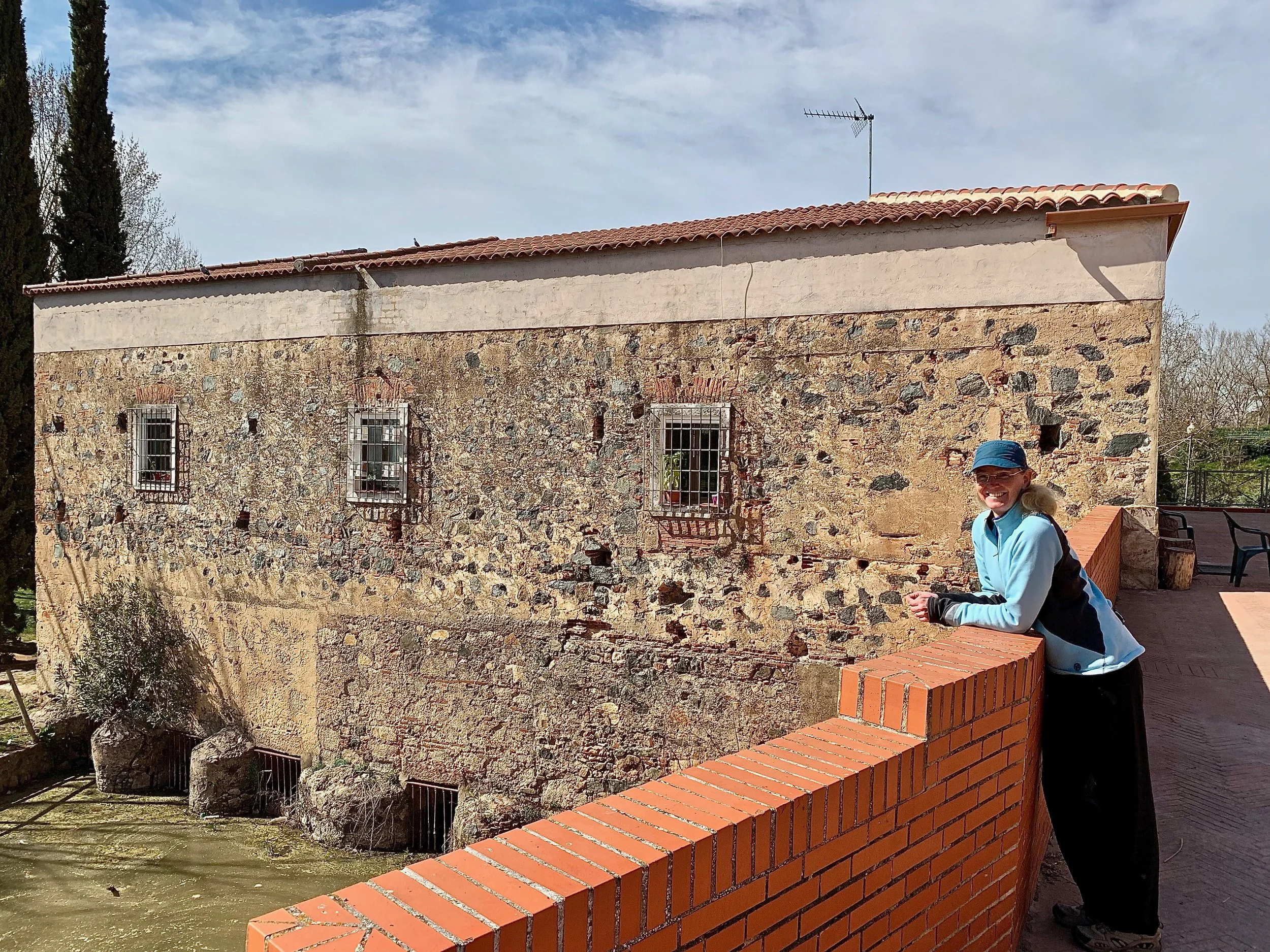The old, stone albergue (pilgrims’ hostel) sits right over a canal within the Parque del Río Guadiana. It was probably once a mill. Copyright © 2018-2019 Pedals and Puffins.