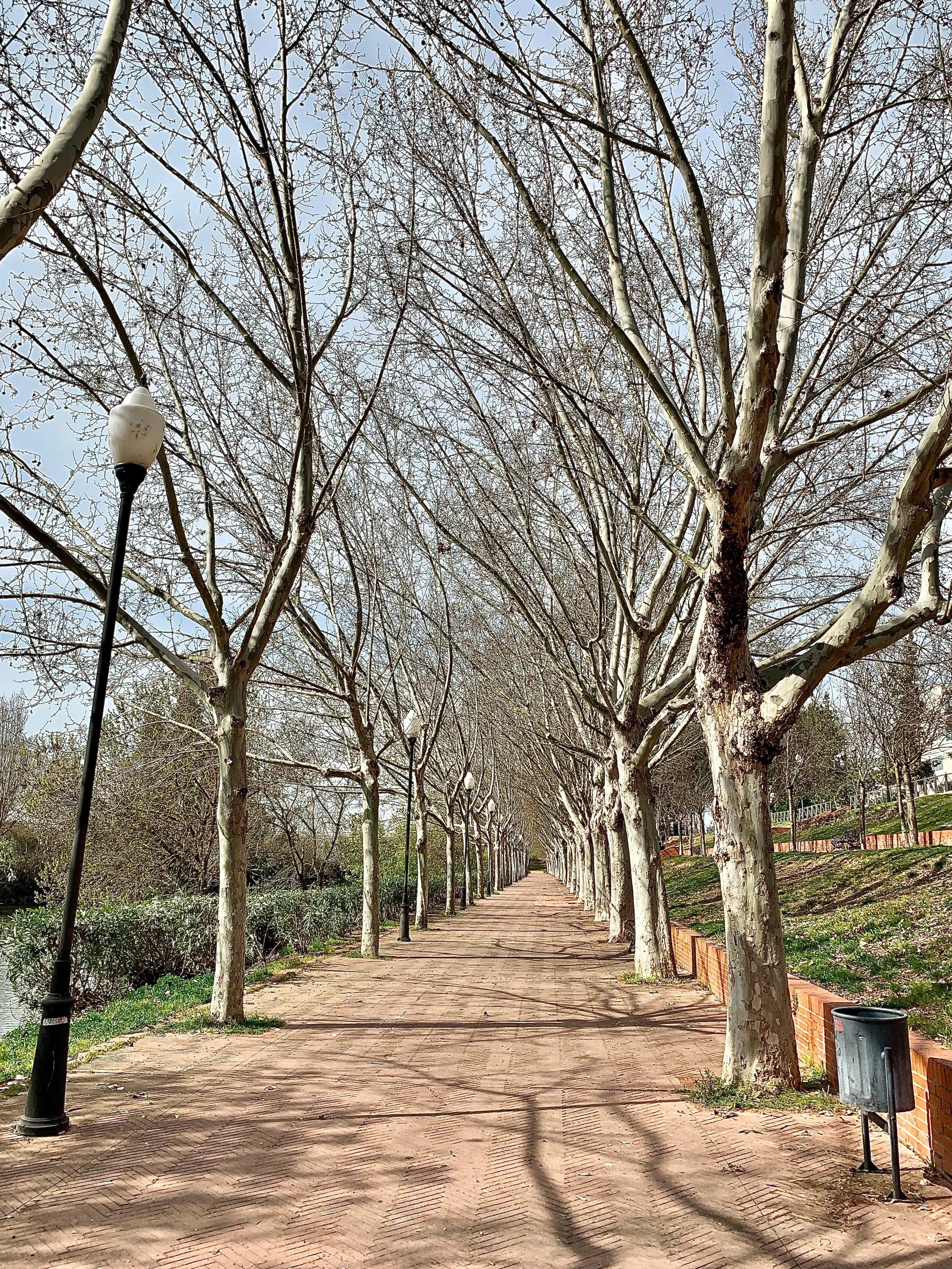 The Parque del Río Guadiana lines the river with nicely landscaped walkways and gardens. Copyright © 2018-2019 Pedals and Puffins.