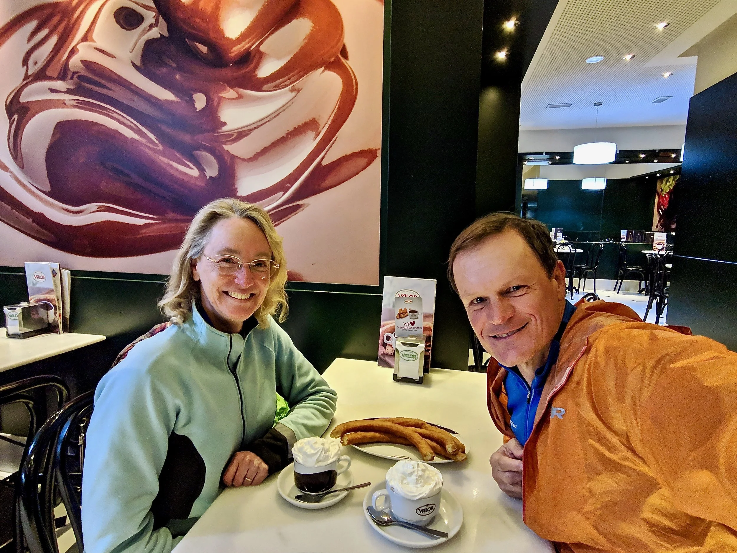 March 5 is our 31st wedding anniversary. We celebrated with a cup of thick, Spanish hot chocolate, whipped cream, and a couple of churros. Very yummy. Copyright © 2018-2019 Pedals and Puffins.
