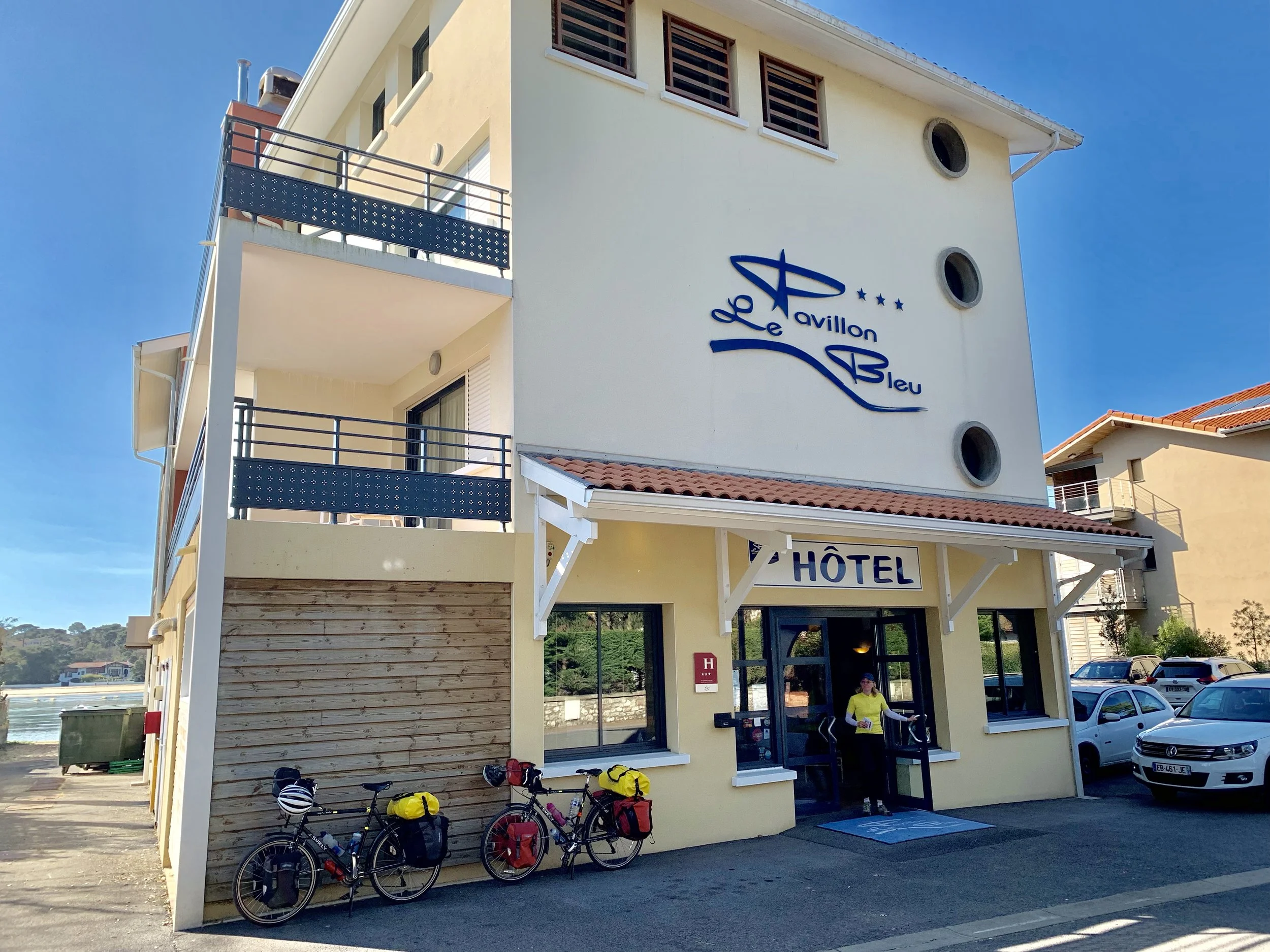 Our home for the night, the Hôtel du Lac. Mimizan, France. Copyright 2018-2019 by Pedals and Puffins.