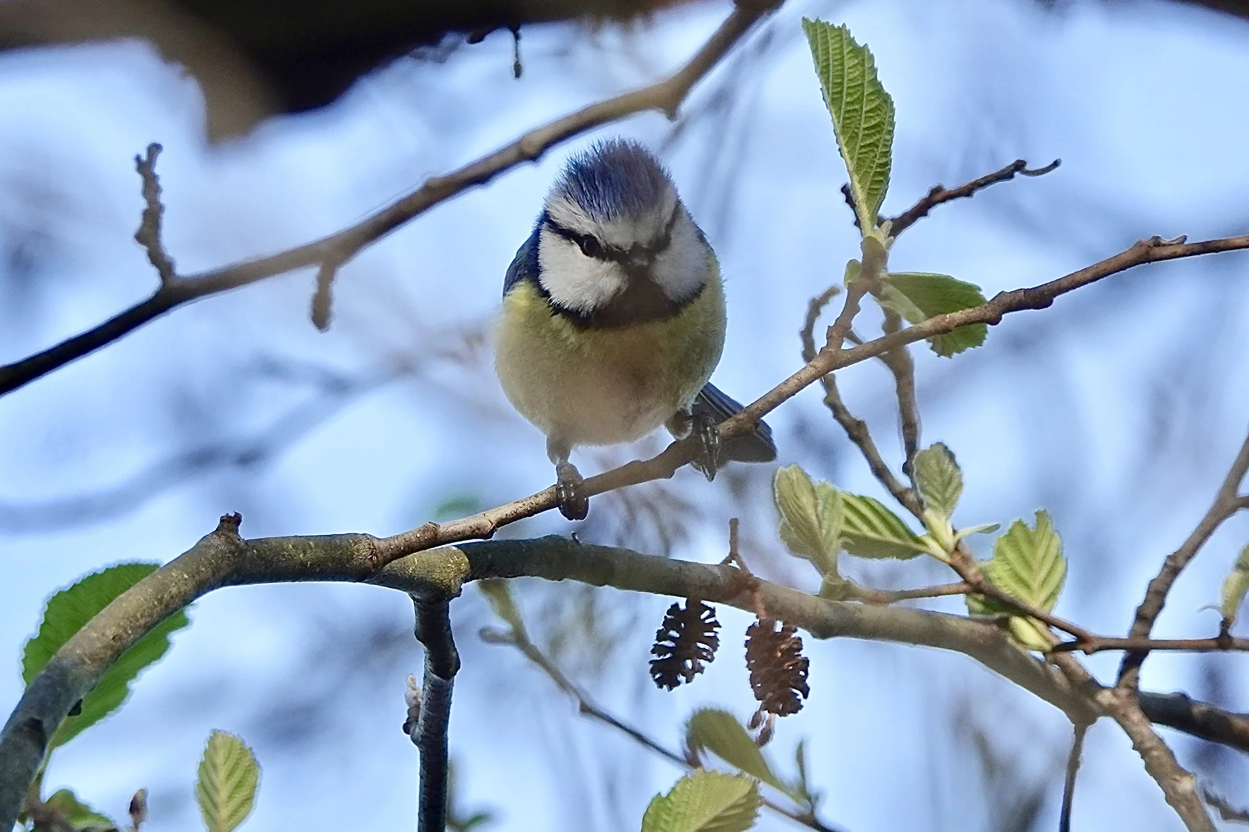 Blue Tit, Mimizan, France. He looks like he’s in a fighting mood. Copyright 2018-2019 by Pedals and Puffins.