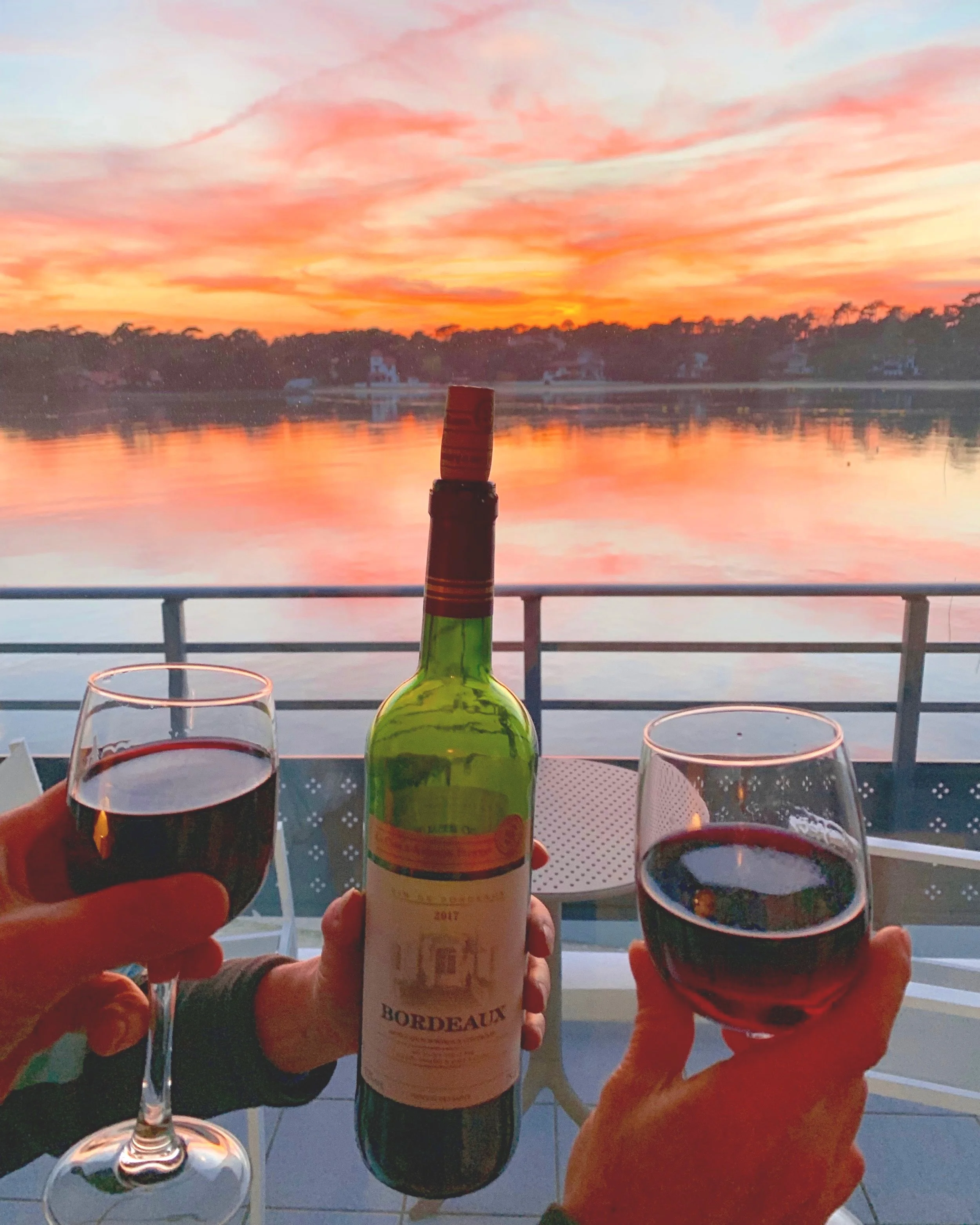À ta santé! We treated ourselves to a local red, since we’re getting close to Bordeaux. Hossegor, France. Copyright 2018-2019 by Pedals and Puffins.