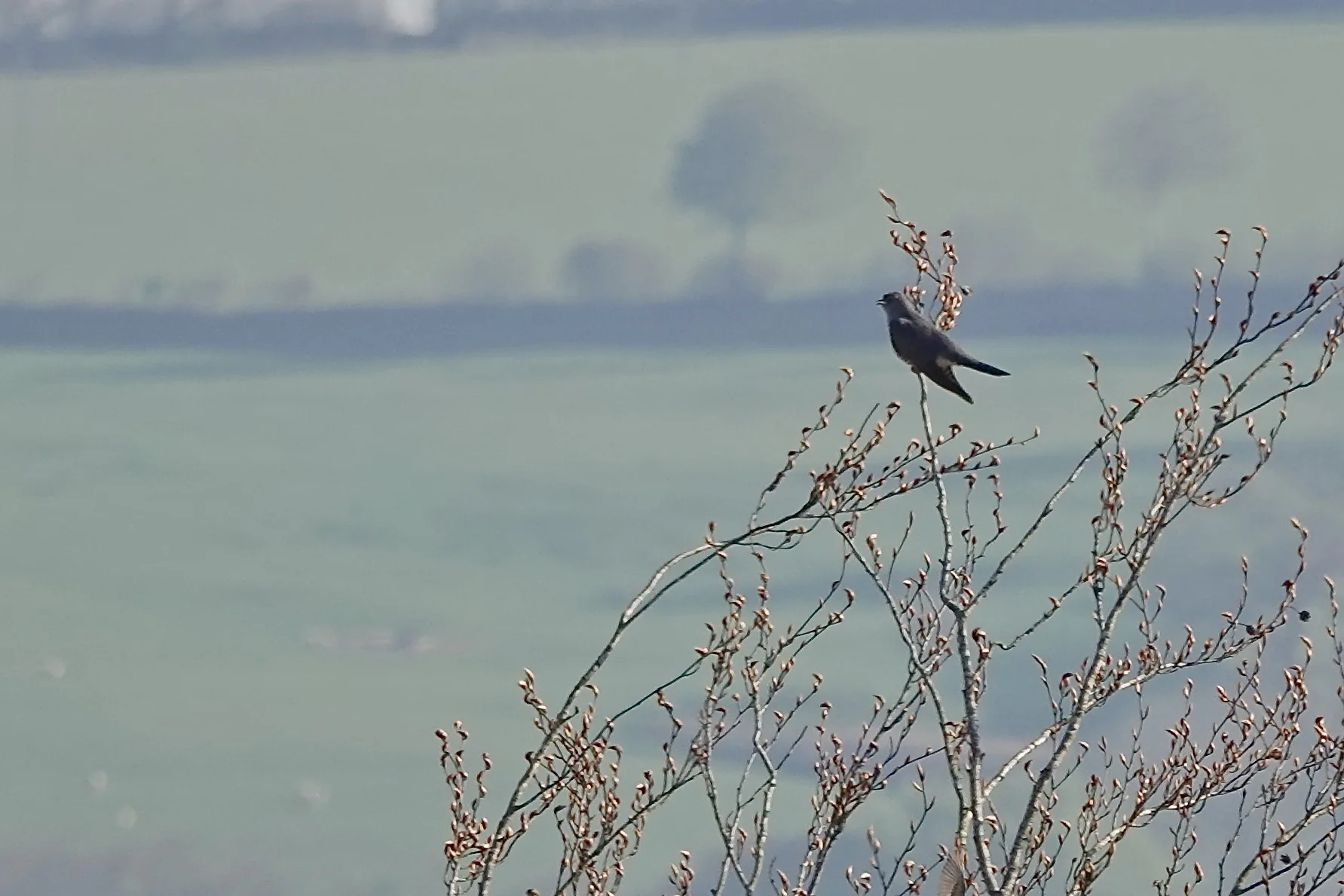 As we ate breakfast, the Cuckoo started calling again. We jumped up, grabbed our binoculars and a camera, and headed towards the call. The third time’s the charm, as they say. We were finally able to get a look at a Cuckoo! It was a very special moment. The profile of the Cuckoo was very distinctive. They have an unusual posture when they sit in a tree, drooping their wings.