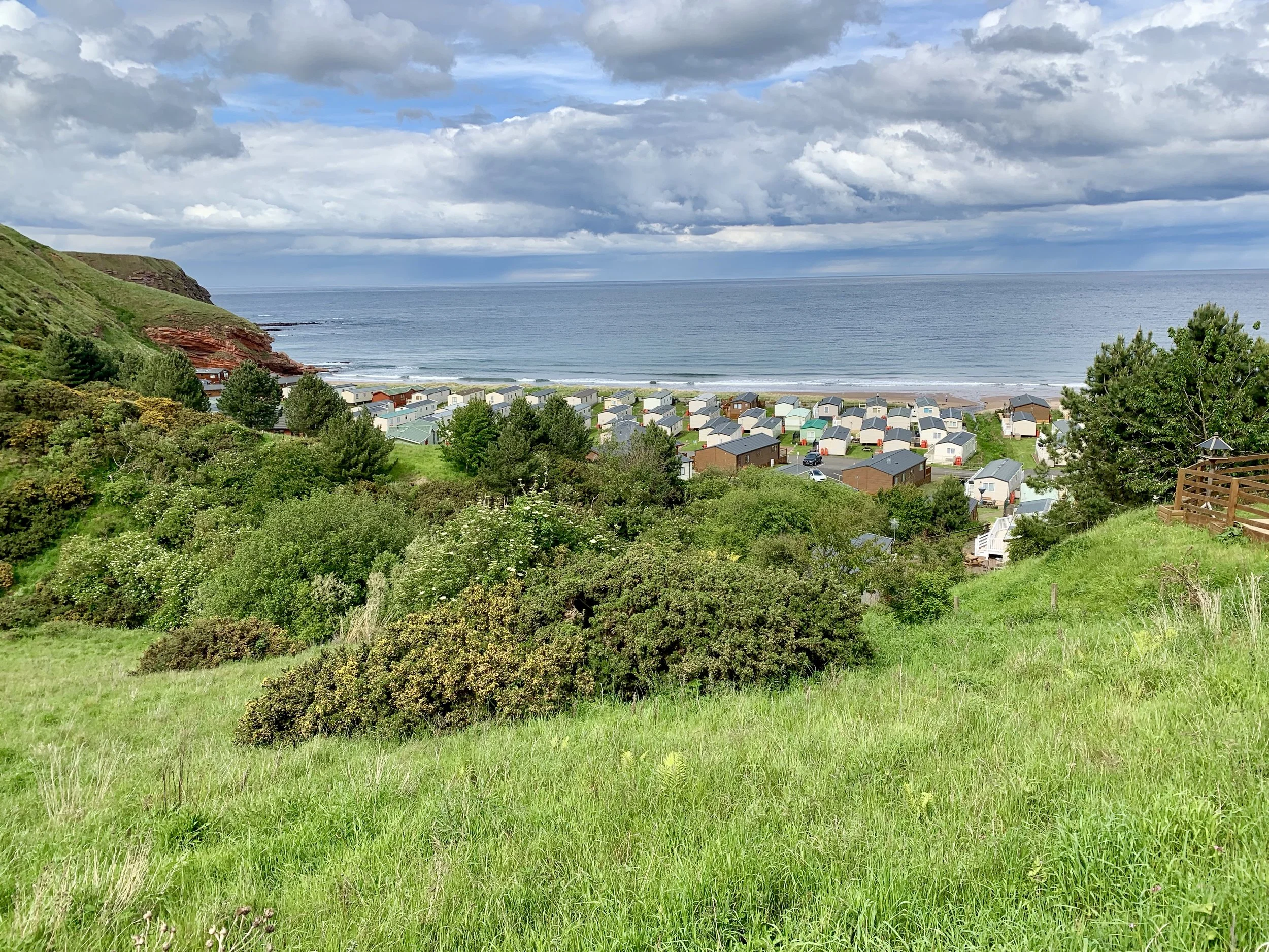 That’s Pease Bay, and we’re about to plummet over this cliff to get there. Cockburnspath, Scotland, UK. Copyright © 2018-2019 Pedals and Puffins.