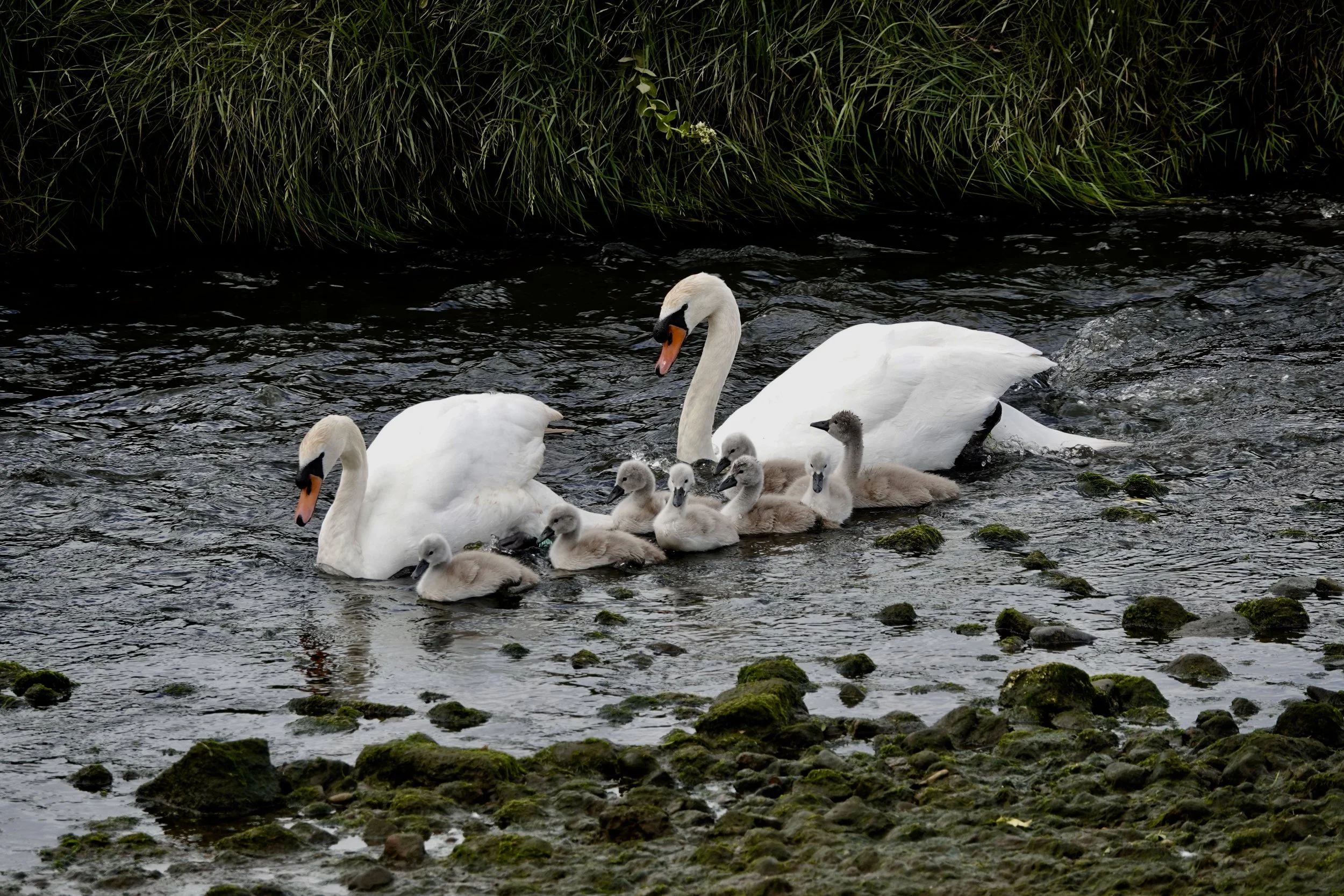 Mute Swans with cygnets. West Barns, Scotland, UK. Copyright © 2018-2019 Pedals and Puffins.