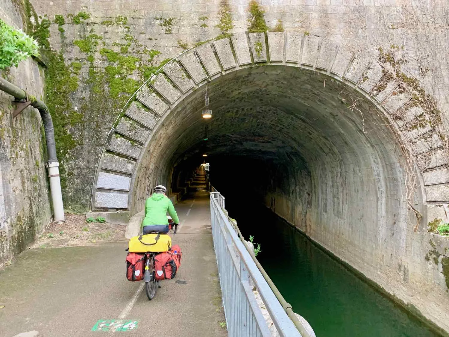 Here I go! Into the mouth of the Citadel Canal Tunnel. Besançon, France. Copyright © 2018-2019 Pedals and Puffins.