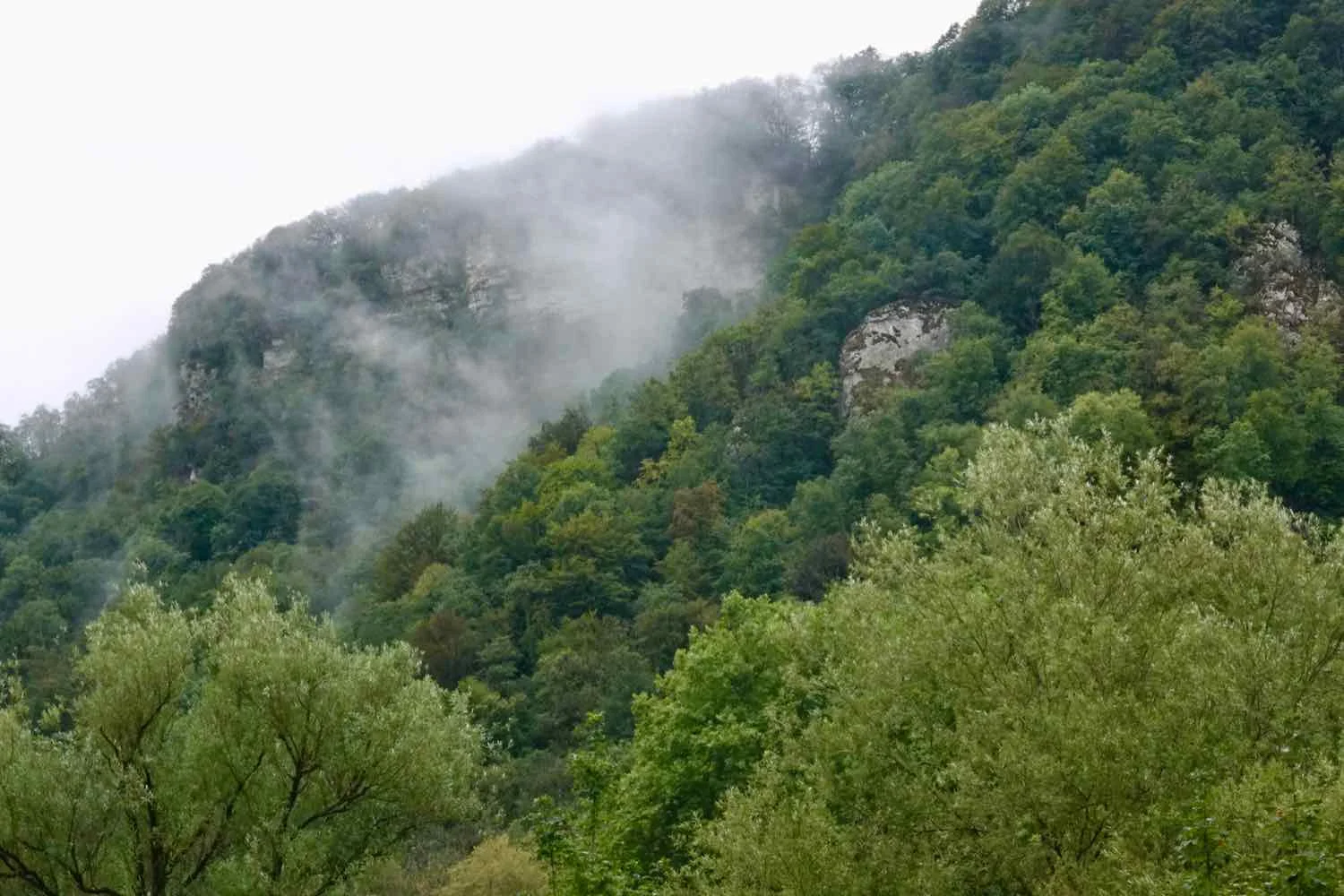 In some places, the Doubs River valley narrowed, and was bordered by rugged cliffs. In between periods of rain, a steamy mist would rise out of the river valley, filling the nooks and hollows of the surrounding hills.