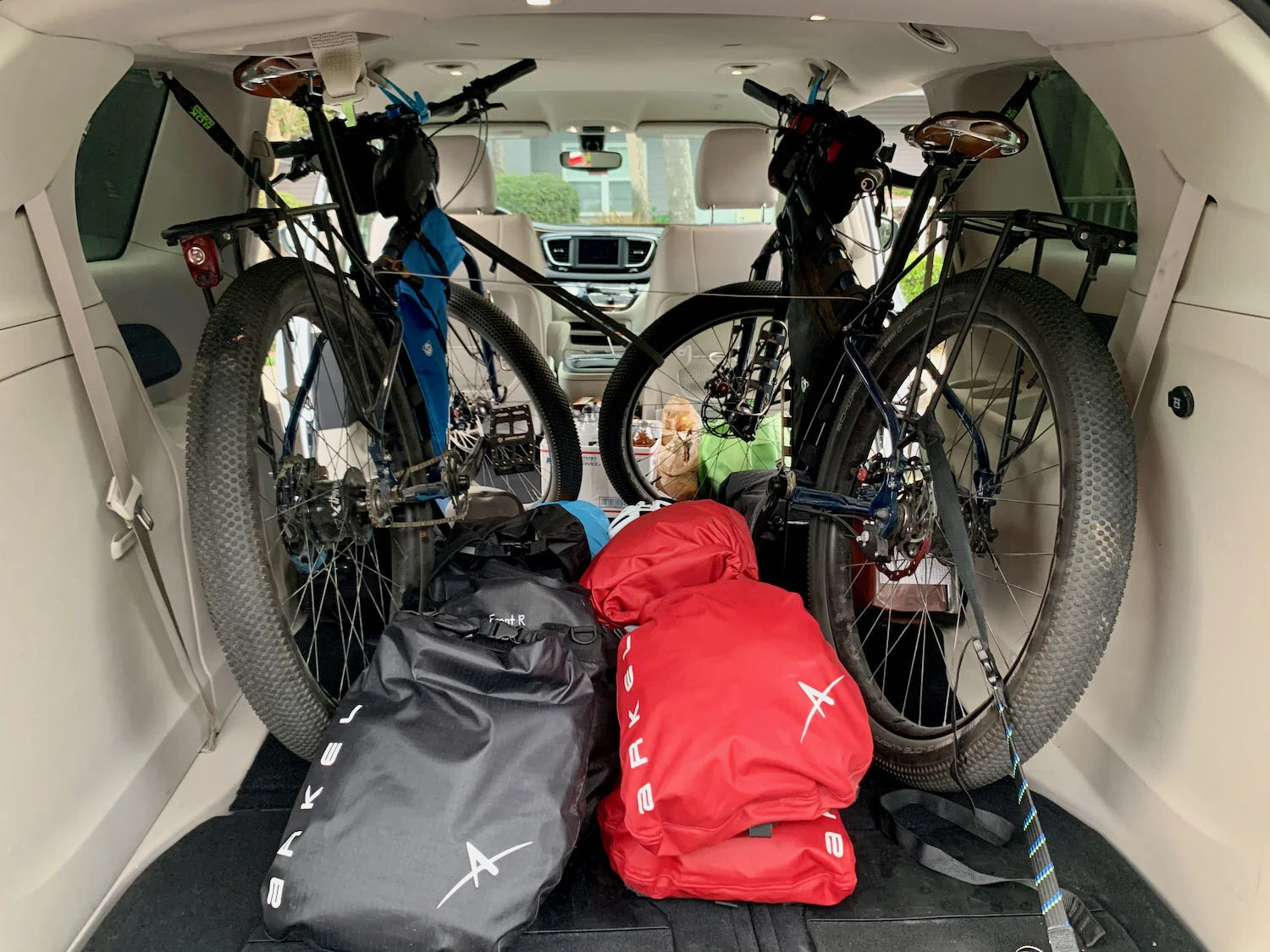 Packed and ready to roll. A rented minivan gave us enough space to transport our bikes upright (lashed in with ROK straps). We’ll return the van in Whitefish, Montana, at the start of the Western Wildlands Route. Copyright © 2019-2021 Pedals and Puffins.