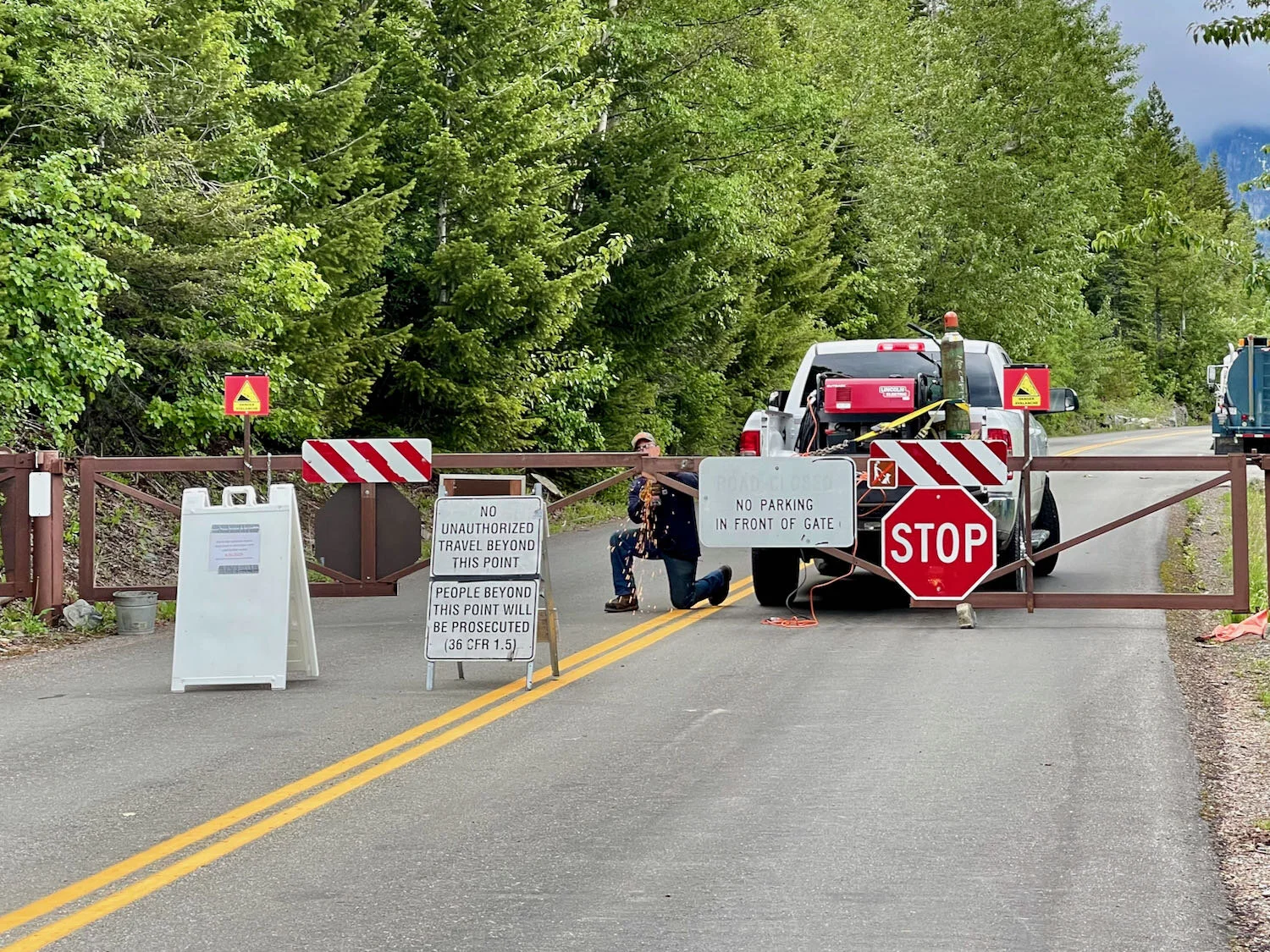 Our hopes of cycling all the way to the top of Logan Pass, the highest point on the Going-to-the-Sun Road were cut short when we reached a road closure at the 8-mile mark, just after a big bend in the road known as The Loop. Crews were still clearing the road of debris further ahead, and the road would be closed until 3:30 in the afternoon.